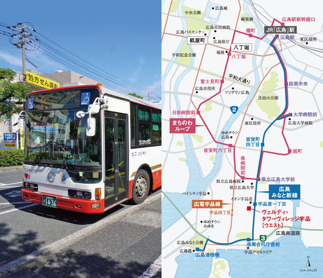 宇品東と広島駅、広島港をつなぐ「広島みなと新線」が運行開始。バス停から広島駅までスムーズなアクセスが可能に。暮らしの自由度が高まります。
